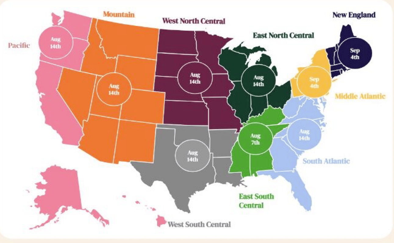 BUT: Back to School Season (BTS) is already in full swing in some parts of the US. Here is a helpful chart from Instacart with BTS dates.