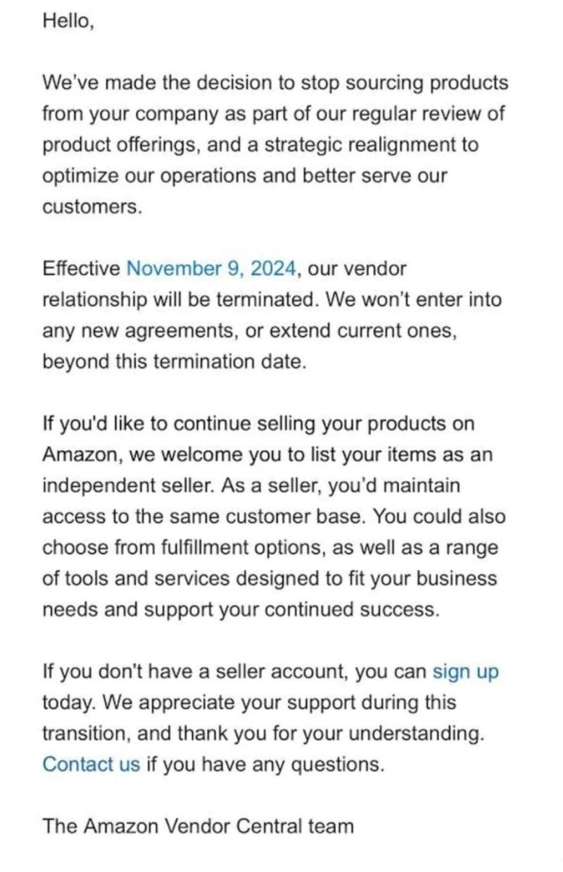 This week rocked Amazon 1P/Vendor Central vendors, with many receiving the following communication from Amazon: