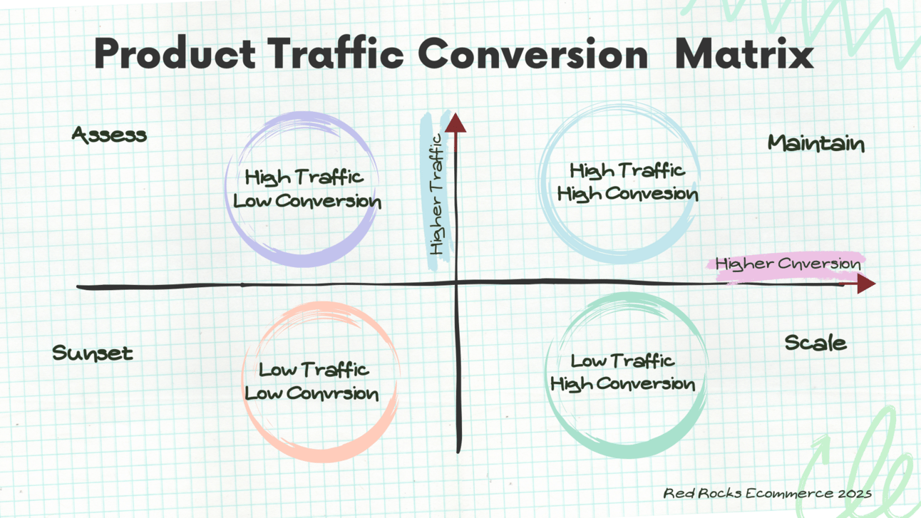 I use this traffic and conversion matrix to help brands decide how to allocate resources, advertising, and optimization efforts.